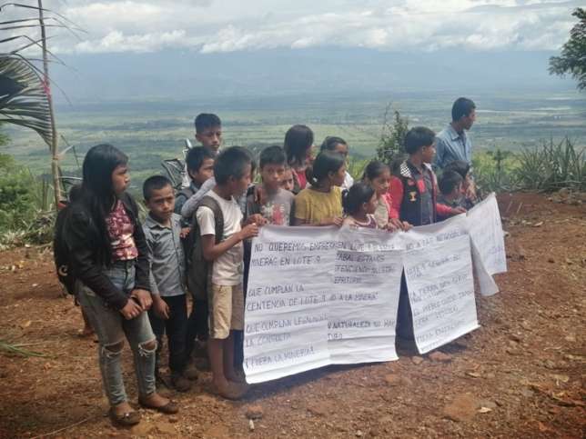 Photo caption: “We don’t want mining companies in Lote 9.” Children protesting again against extractivism in the community of Lote 9, El Estor, Izabal, Guatemala. Photo taken by Julio González from Colectivo MadreSelva.